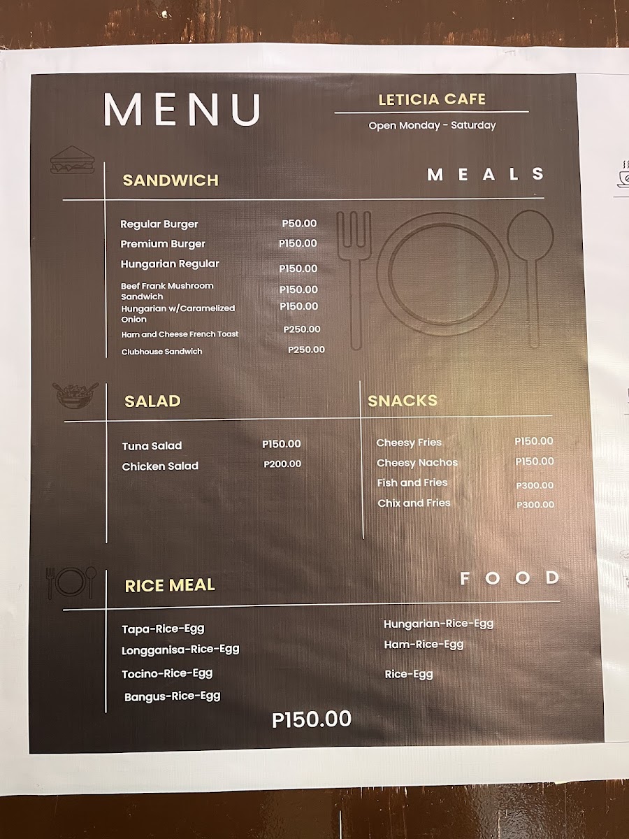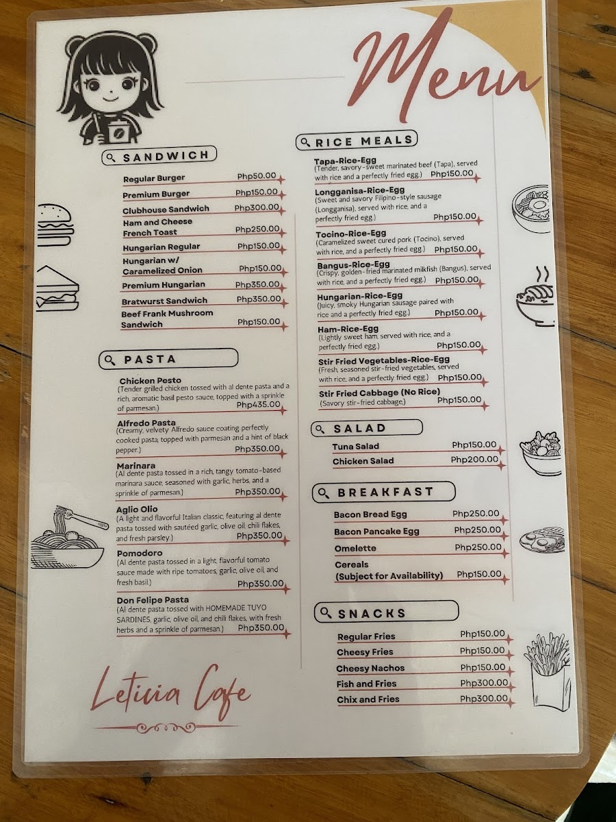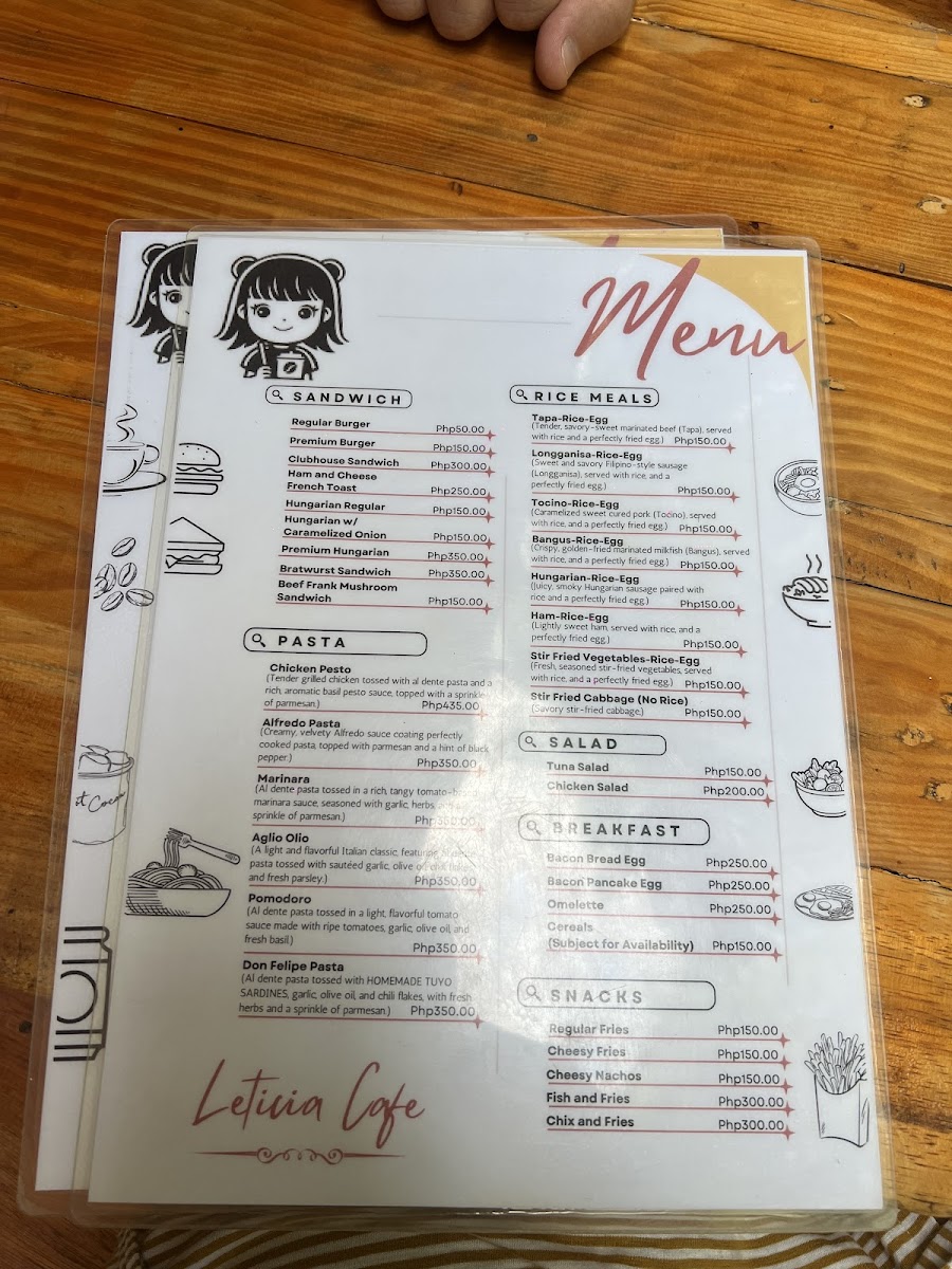 One of the highlights of Cafe Leticia is its impressive selection of Filipino breakfast meals. Patrons have praised the generous portions and quality, noting it as one of the best breakfast spots in Coron. Whether you're craving a hearty meal to start your day or a light snack to keep you going, Cafe Leticia has something to satisfy your appetite.